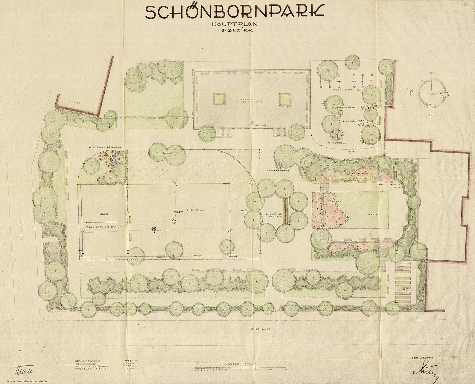- Archiv der MA42, Stadtgartenamt, 08_Schoenbornpark_Entwurf bunt_1954_28166.