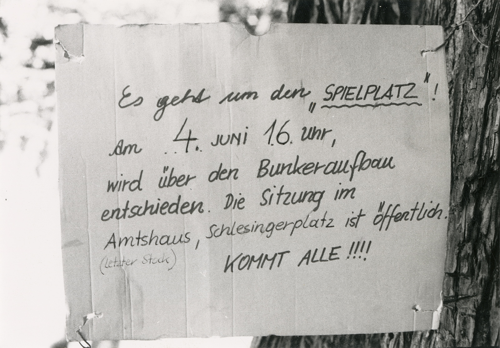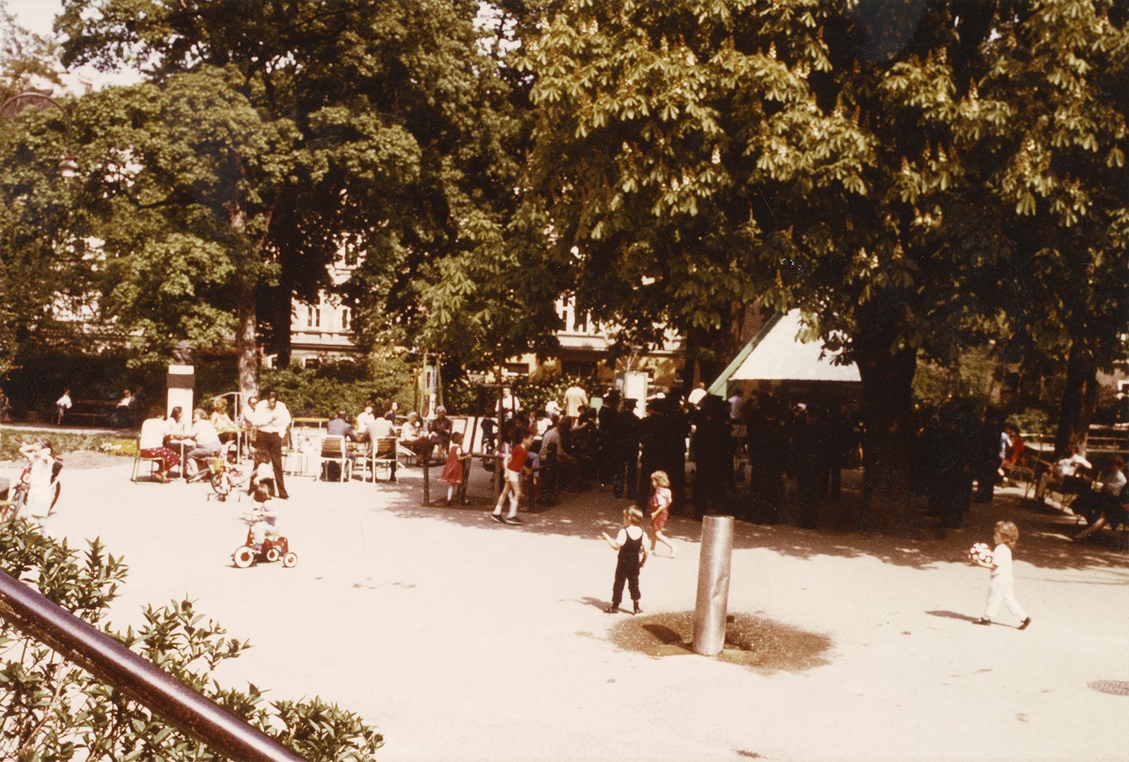 Den Auftakt zu mehreren Bürgerbeteiligungsformaten bildete eine „Bürgerversammlung“ im September 1983, die vom zuständigen Umweltstadtrat Peter Schieder (1941–2013) einberufen worden war und an der auch Museumsdirektor Klaus Beitl teilnahm. Hier wurden bereits diverse Vorschläge gesammelt. In weiterer Folge wurde vom 5. bis 7. Mai 1984 „eine große Freiluftausstellung“ im Schönbornpark geplant und durchgeführt, bei der der Stadtrat versicherte, dass es „selbstverständlich“ auch möglich sein werde, „Meinungen und Vorschläge zur Parkgestaltung zu deponieren“ – der Park solle „einfach, zweckmäßig, kindergerecht und benützergerecht“ werden.2 (Abb. 4 und Abb. 5) Bei dieser Freiluftausstellung präsentierte auch das VKM auf vier Schautafeln seine Ausbaupläne. In einem Interview für die Zeitung westend gab der Wiener Landtagsabgeordnete Herbert Zima (1933–2018) Auskunft über die Ergebnisse der 120 bei der Ausstellung abgegebenen schriftlichen Stellungnahmen. Er zeichnete dabei ein recht buntes Bild je nach Altersgruppen unterschiedlicher „Wunschvorstellungen“: „Kinder und Jugendliche etwa wollen unter anderem eine Rutsche, verbesserte Ballspielplätze und ein Schwimm- oder Planschbecken, 20- bis 40-jährige eine Verbesserung des Babyspielplatzes und für die Verbauung des Bunkers, wie sie vom Volkskundemuseum vorgeschlagen wird, sprechen sich vor allem Vertreter der Altersgruppe über 40 aus.“3 Nach der Ausstellung wurden weiterhin Ideen entgegengenommen. Als größtes Problem im Schönbornpark wurde überwiegend der Bunker genannt: „Obwohl er nicht zu den riesigen Monstren aus Kriegstagen zählt, sorgt er hier für ein schlechtes Gesamtbild.“4 Weil der Bunker nicht entfernt werden könne, solle man doch aus „der Not eine Tugend machen“, auf der Oberfläche „eine Spielfläche nach den Wünschen der Kinder errichten“ und alles unternehmen, um aus dem Schönbornpark „eine Oase der Erholung, Entspannung und des Spiels zu machen“.5