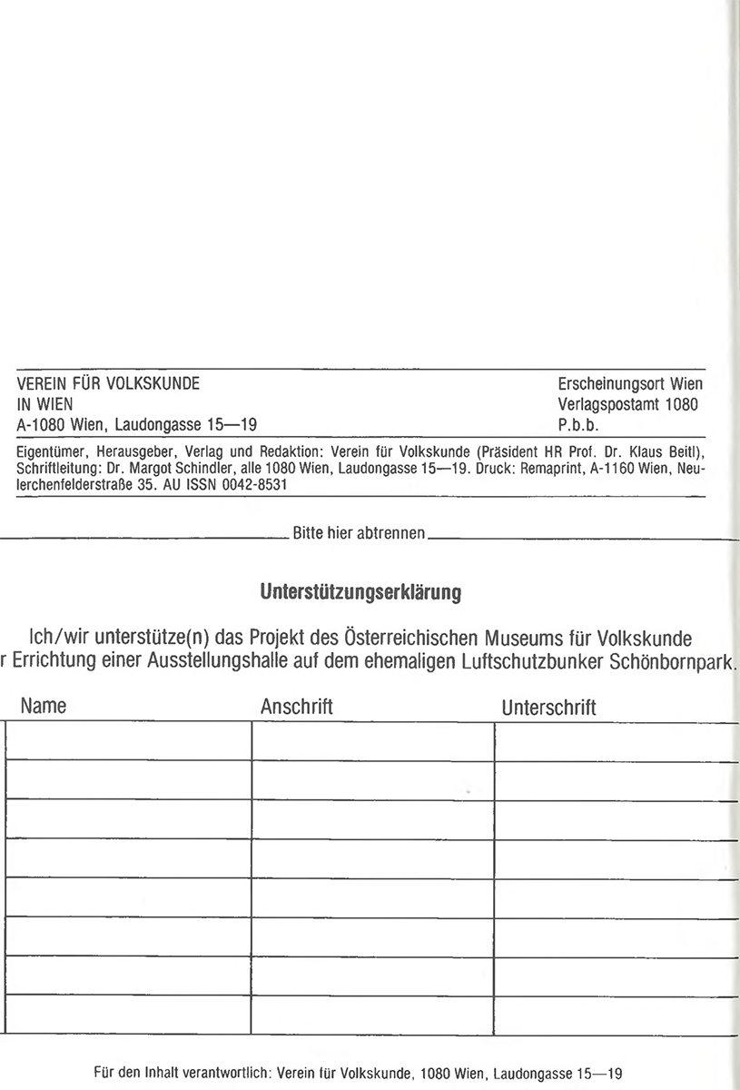 - Vgl. Franz Grieshofer: Jahresbericht des Vereins und Österreichischen Museums für Volkskunde für 1986. ÖZV 90/1987, S. 144 f.