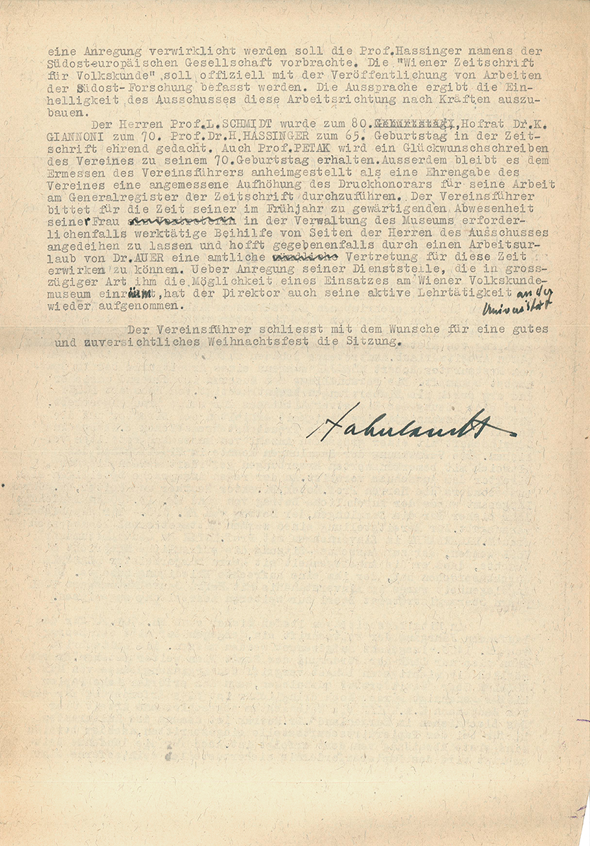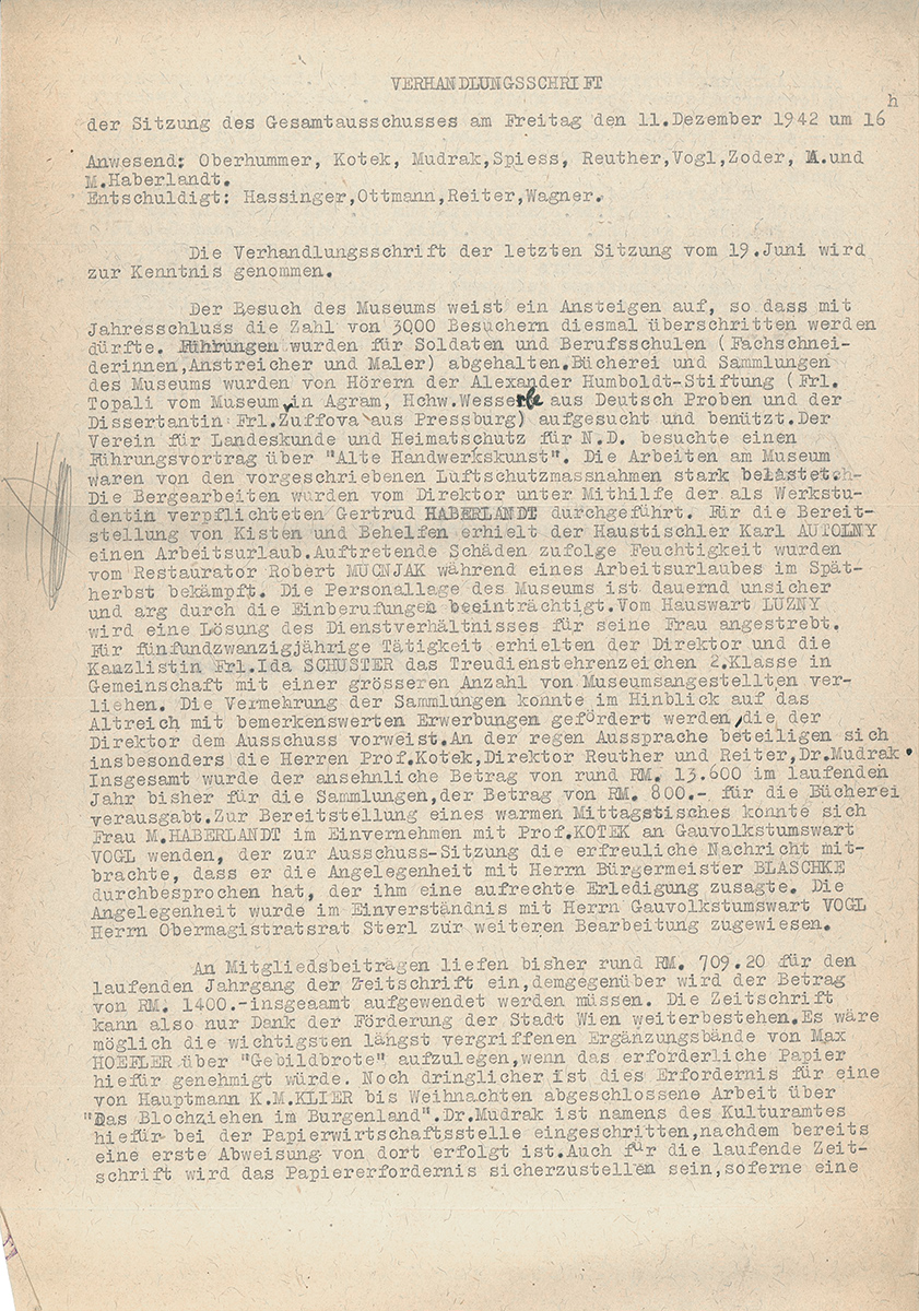 - Vgl. Verhandlungsschrift der Sitzung des Gesamtausschusses vom 2. Dezember 1943; Archivkarton Luftschutz, Archiv Volkskundemuseum Wien.