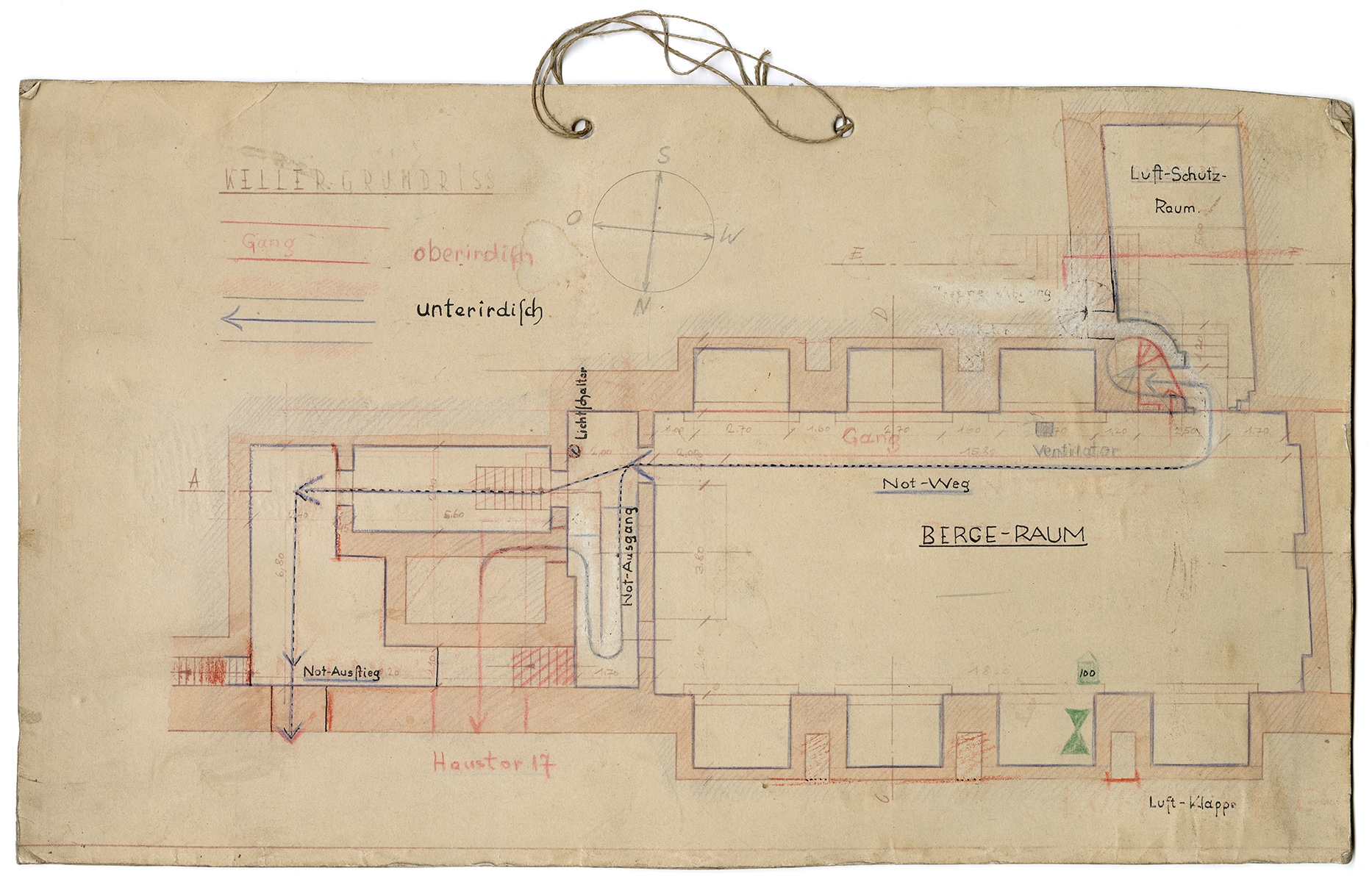 Zu Bergeräumen für Objekte wurden zunächst vier Räume im Erdgeschoss (Abb. 14), spätestens ab Februar 1943 waren im Luftschutzkeller25 und in der nicht mehr zu identifizierenden „Luftschutzhalle“26 Objekte gelagert.