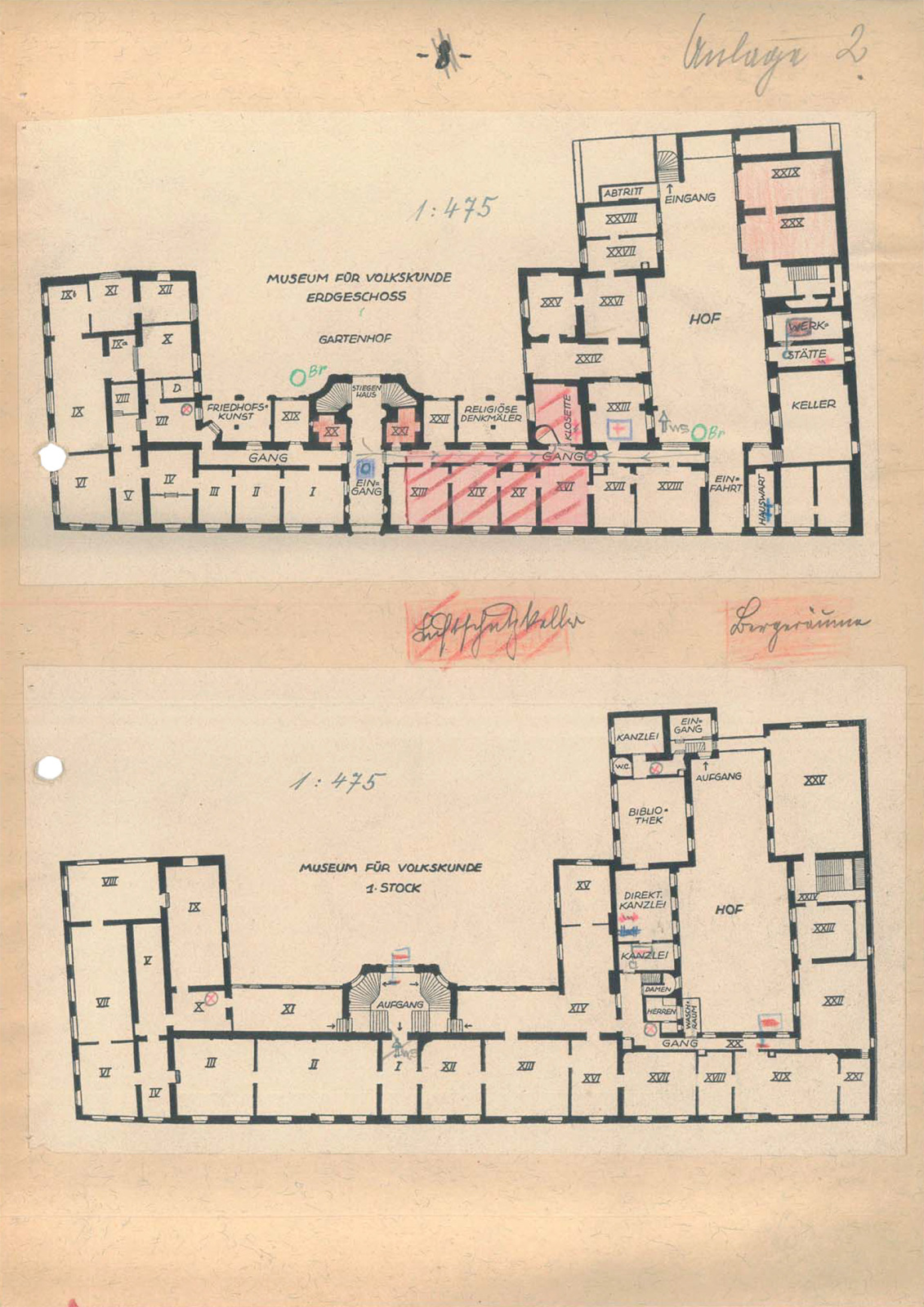 - Vgl. Betriebs-Luftschutzplan des Volkskundemuseum Wien, gültig von 1939–1945, S. 61; Archivkarton Luftschutz, Archiv Volkskundemuseum Wien.