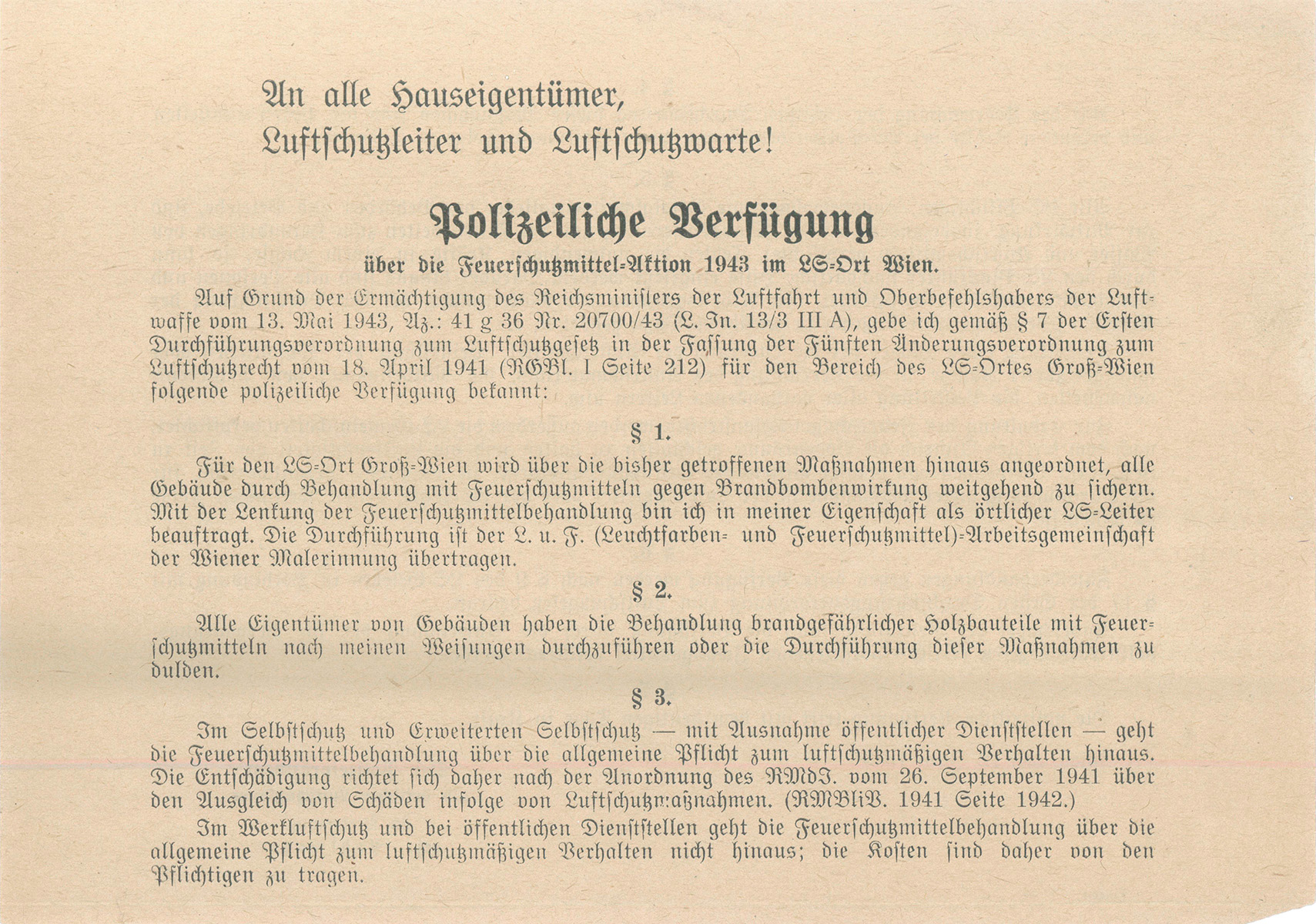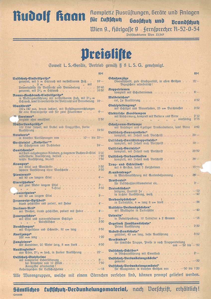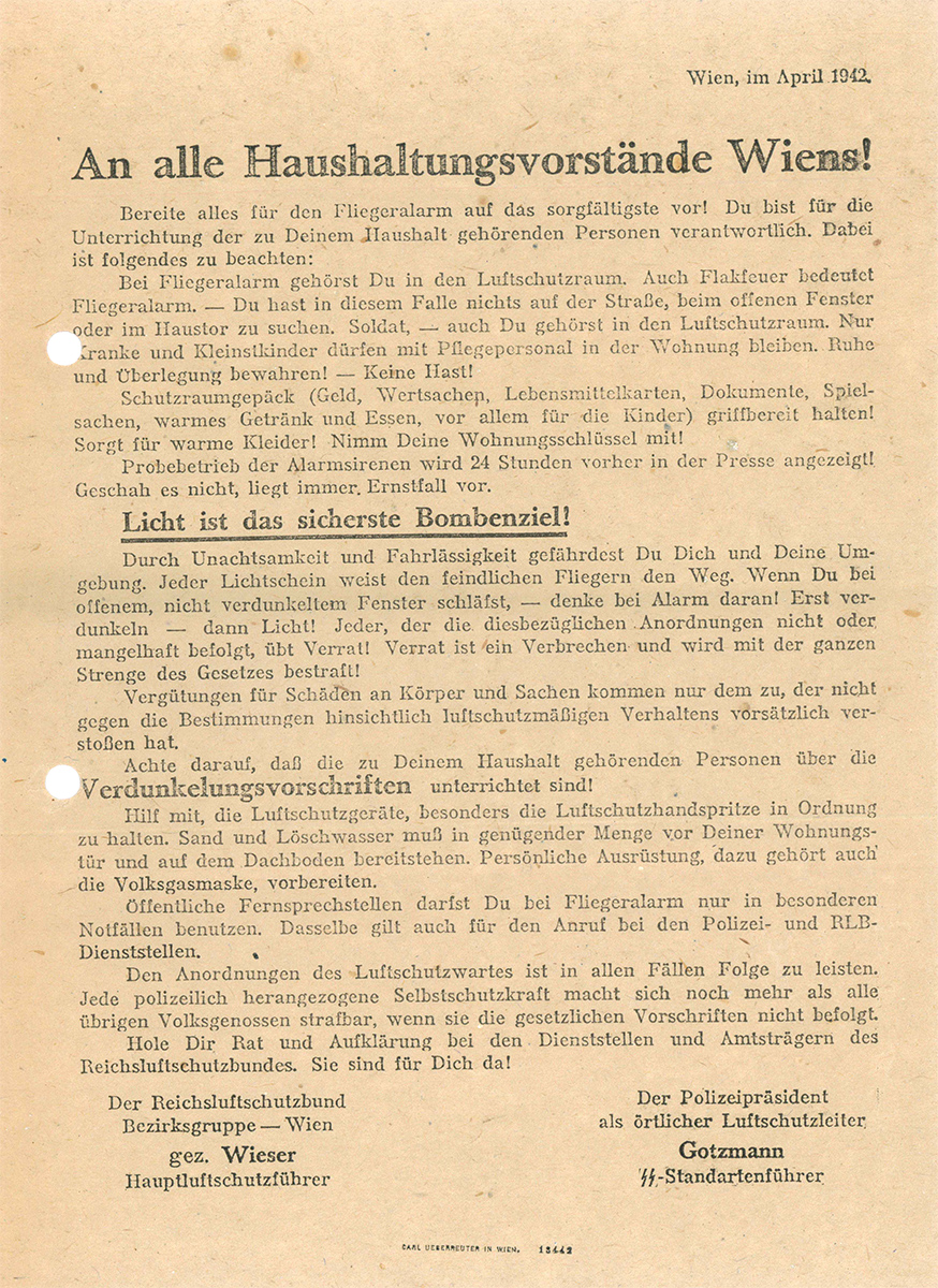 - Vgl. Auftragserteilung Fa. Viktor Otte & Co. vom 19. September 1939; Archivkarton Luftschutz, Archiv Volkskundemuseum Wien.