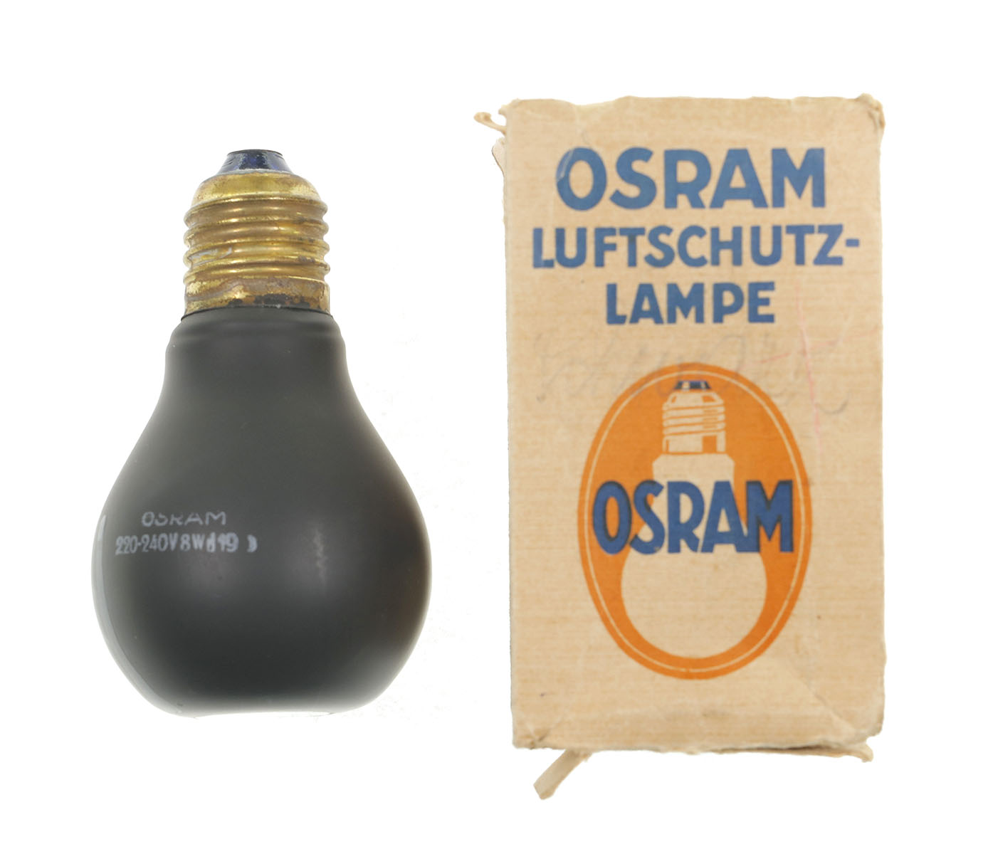 Grundsätzlich sollte der „Betriebs-Luftschutzplan“ bis Kriegsende immer wieder hinsichtlich Belegschaft sowie der vorhandenen Luftschutzbauten und -geräte aktualisiert werden. Obwohl einiges an Ausrüstung notwendig war (Abb. 5), hat sich keines der damals im Museum verwendeten Utensilien erhalten. Nur drei Objekte in den Sammlungen verweisen noch auf Luftschutzmaßnahmen während des Zweiten Weltkrieges: eine Bedienungsanleitung für eine Luftschutzmaske, eine Luftschutzlampe (Abb. 6) und ein „Volksempfänger“ (Abb. 7). Solche Luftschutzlampen2 wurden auch im Museum genutzt und dienten – neben Jalousien – den verordneten Verdunkelungsmaßnahmen (Abb. 8). Über einen eigenen „Volksempfänger“, über den das NS-Regime seine ideologischen Indoktrinationen verbreitete, verfügte das Museum erst nach Mitte 1944. Bis dahin gab es kein Radio, „mit dem bei Ausschaltung des normalen Rundfunkempfanges die Nachrichten über Luftgefahr abgehört werden […]“ 3 konnten.