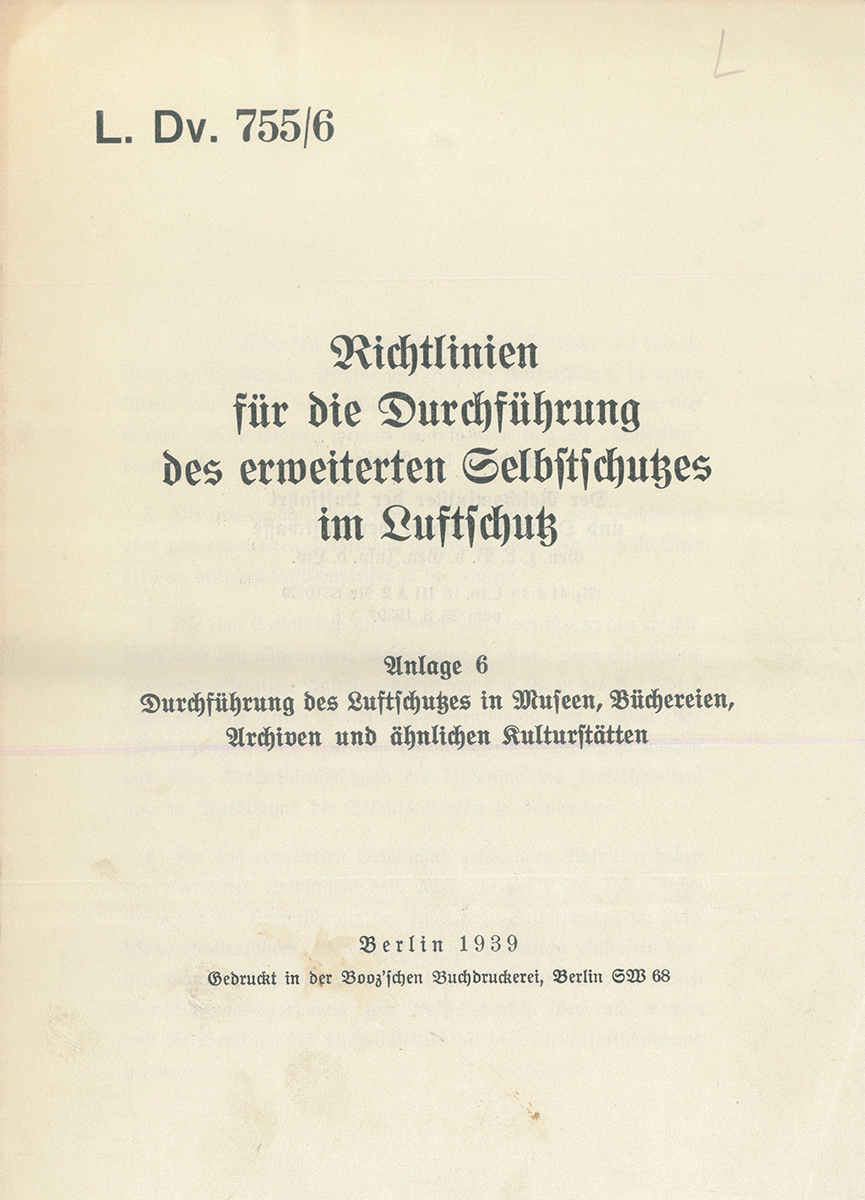 ![Abbildung 9:Broschüre „Richtlinien für die Durchführung des erweiterten Selbstschutzes im Luftschutz. Anlage 6. Durchführung des Luftschutzes in Museen […].“, 1939; Archivkarton Luftschutz, Museumsarchiv © Volkskundemuseum Wien](/files/uploads/41/abbildung-9-1939_08_28_luftschutzrichtlinien-fr-museen-1_s1_kor.jpg)