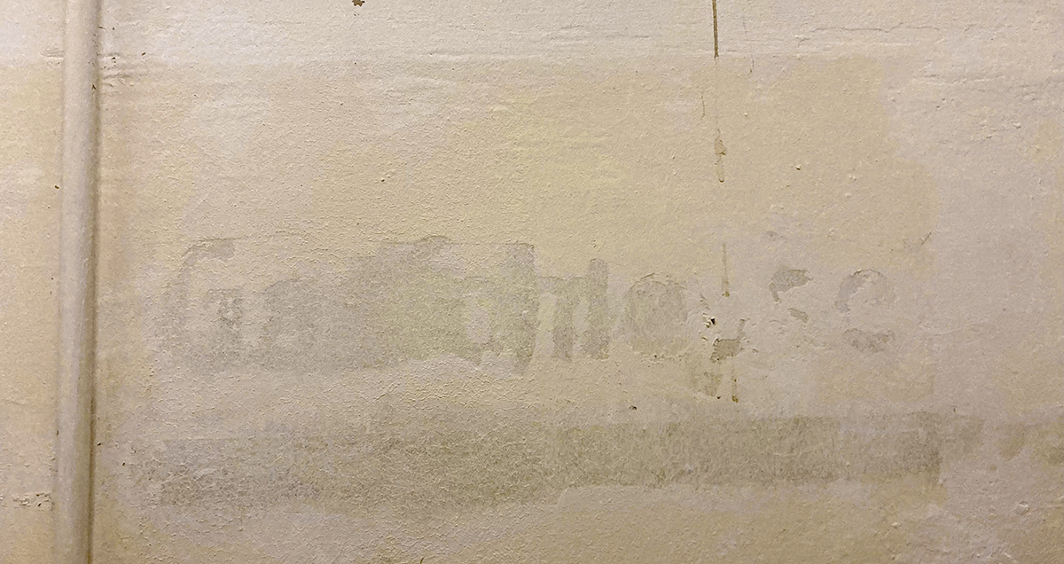 Die zuerst in Betracht gezogene Gedenktafel wurde von uns schnell verworfen und das Konzept eines umfassenderen Erinnerungs- und Awareness-Projekts nahm Gestalt an. Es konzentriert sich auf die beiden von uns als wesentlich ausgemachten Merkmale: Das Gebäude ist sehr massiv, eigentlich unzerstörbar aus Stahlbeton gebaut. Und trotzdem wird es beinahe nicht wahrgenommen. Es ist mehr oder weniger unsichtbar (Abb. 1).