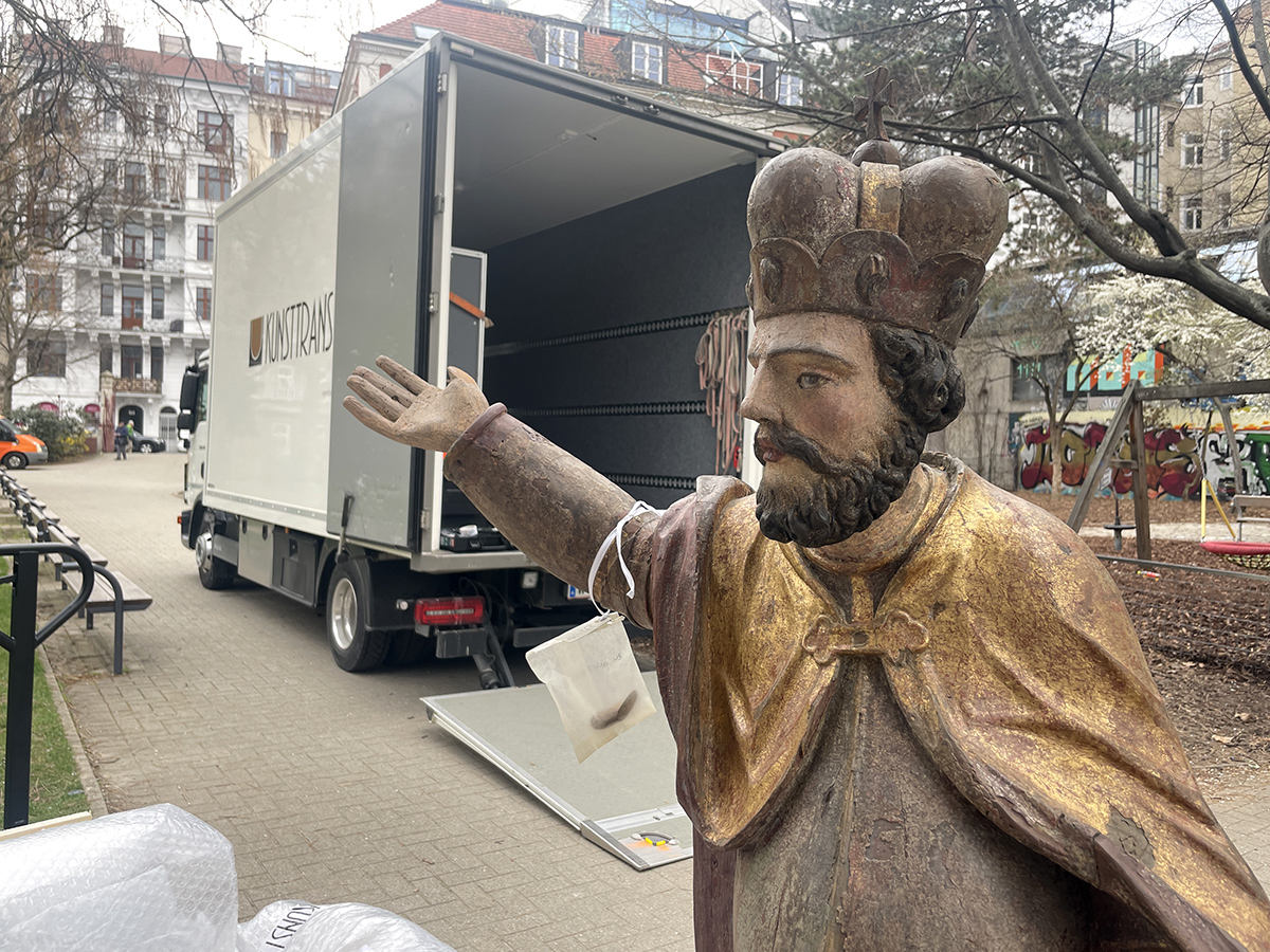 Die Probleme mit der Feuchtigkeit blieben bestehen (Abb. 3). Ein weiterer Wassereinbruch 2020 führte dazu, dass der Auszug der Objekte (Abb. 4) forciert wurde. 2023 und 2024 wurden die dort gelagerten Objekte schließlich abgesiedelt (Abb. 5 bis 8) und im Hauptdepot des Museums mit allen anderen Beständen (Sammlungen, Archiv und Bibliothek) zusammengeführt.